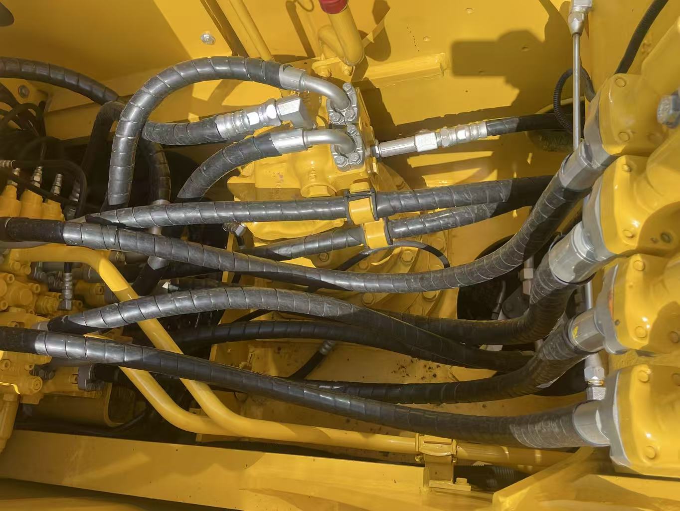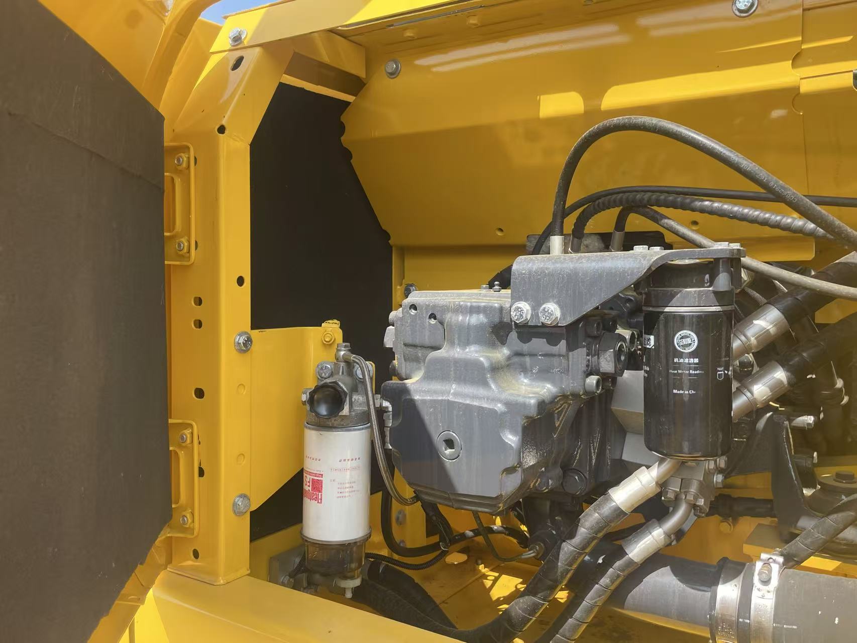 The Komatsu SAA6D107E-1 engine (110kW rated power, 6.69L displacement) is neatly arranged in a sealed engine compartment with a side-by-side heat dissipation device for efficient heat dissipation. The double-layer air filter and fuel pre-filter with oil-water separation function adapt to harsh working conditions in emerging markets, ensuring long-term stable operation.
