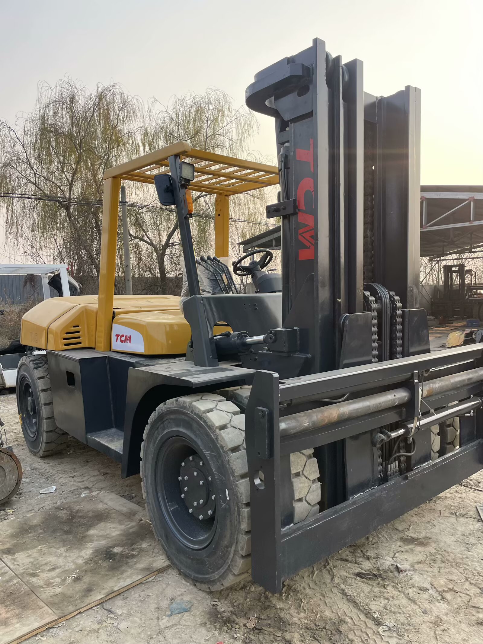 Brand: TCM – A leading Japanese material handling brand under Hitachi Group, with 72+ years of expertise in forklift manufacturing and 180+ global authorized service centers. It operates 9 regional parts warehouses (Dubai, Singapore, Johannesburg, etc.) for fast component supply, holding a 12%+ market share in the 11-ton diesel forklift segment across emerging markets. TCM forklifts are renowned for durable Isuzu-engine setups, precision hydraulics, and robust build, ideal for high-intensity heavy-load tasks like port container yards, large logistics hubs, and construction material handling.Model: TCM FD110Z8 (production years 2010-2018) – A flagship 11-ton diesel counterbalanced forklift in TCM’s Z8 heavy-duty series, built for extreme working conditions. Core specs: rated load 11,000kg (600mm load center); standard lift height 3000mm (upgradable to 8000mm via 4-stage full-free lift mast); minimum turning radius 3900mm; powered by Isuzu 6BG1T 125kW turbocharged diesel engine + 3-speed automatic transmission (3F/3R). Compliant with Tier 2/EU Stage II emissions, it excels in heavy container handling, high-shelf stacking, and outdoor rough-terrain operations, trusted by Middle Eastern port authorities and Southeast Asian industrial firms for stable performance, fuel efficiency, and low total cost of ownership in hot, dusty, and coastal environments.