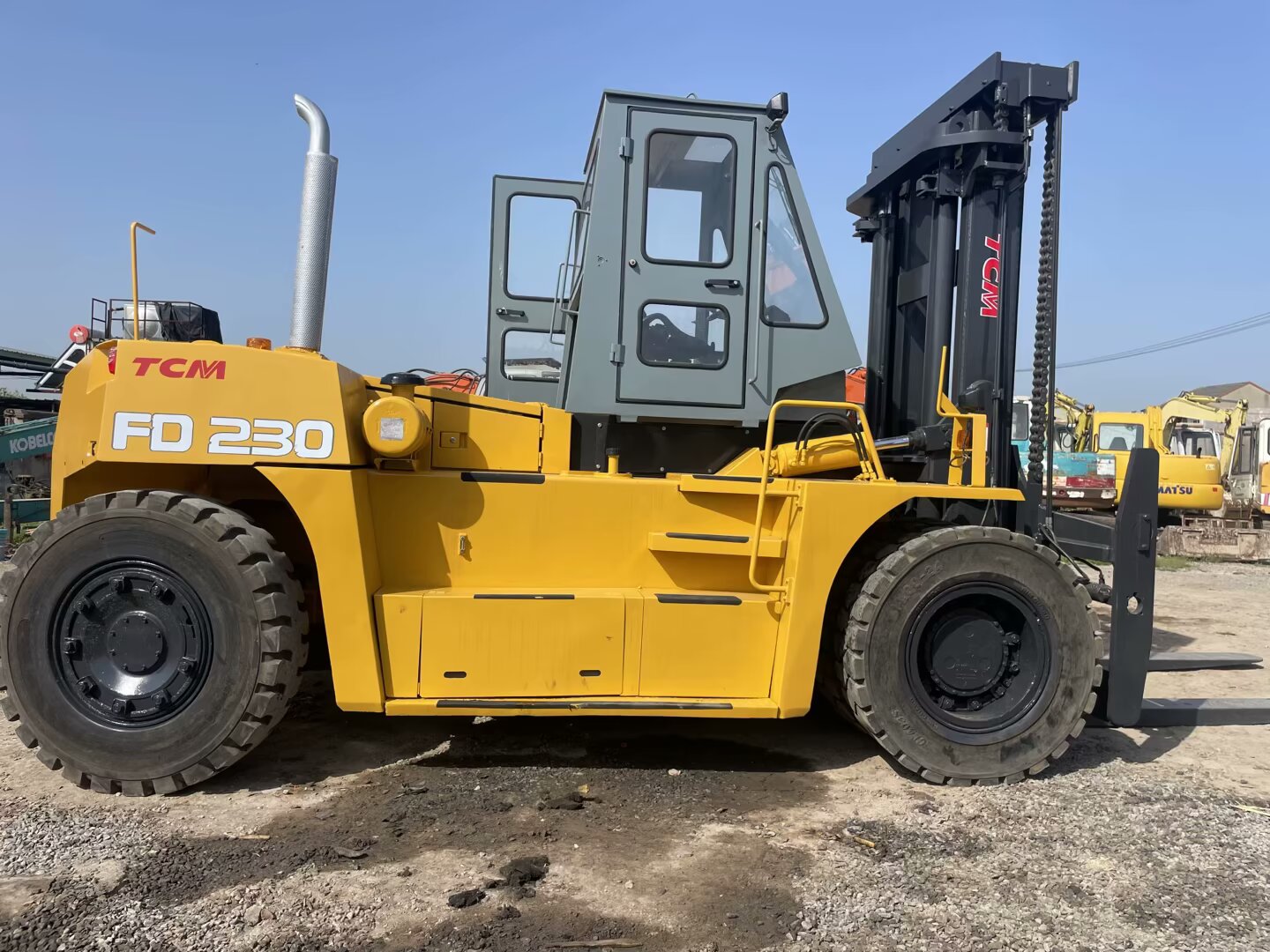 Brand: TCM – A leading Japanese material handling brand with over 70 years of industry expertise, part of the Hitachi Group. TCM specializes in heavy-duty forklift manufacturing, boasting a global network of 180+ authorized service centers and 9 regional parts warehouses (Dubai, Singapore, Johannesburg, etc.). Renowned for rugged construction, reliable powertrains, and adaptability to extreme working conditions, TCM heavy-duty forklifts are the preferred choice for port terminals, steel mills, and large-scale logistics hubs across emerging markets.Model: TCM FD230-2 – A 23-ton heavy-duty diesel counterbalanced forklift, engineered for ultra-heavy load handling scenarios. Core specs: Rated load of 23,000kg (600mm load center); standard lift height of 3000mm (upgradable to 6000mm with a 3-stage mast); minimum turning radius of 5800mm; powered by a Mitsubishi 6D24-TL turbocharged diesel engine (162kW @ 2200rpm) paired with a 3-speed automatic transmission (3F/3R); compliant with Tier 2 emission standards. Designed for port container handling, steel coil transportation, and heavy machinery moving, it is trusted by Middle Eastern port authorities and Southeast Asian industrial enterprises for its exceptional load-bearing capacity, stability, and long-term durability.
