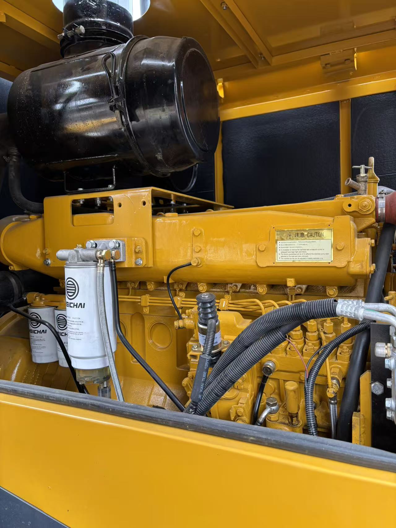 The Weichai WD10G220E23 engine and XCMG exclusive high-torque transmission chain are neatly arranged in a sealed engine compartment with a large radiator for efficient heat dissipation. The double-layer air filter prevents dust from entering the engine, which is crucial for long-term operation in African high-dust mining areas徐工集团.