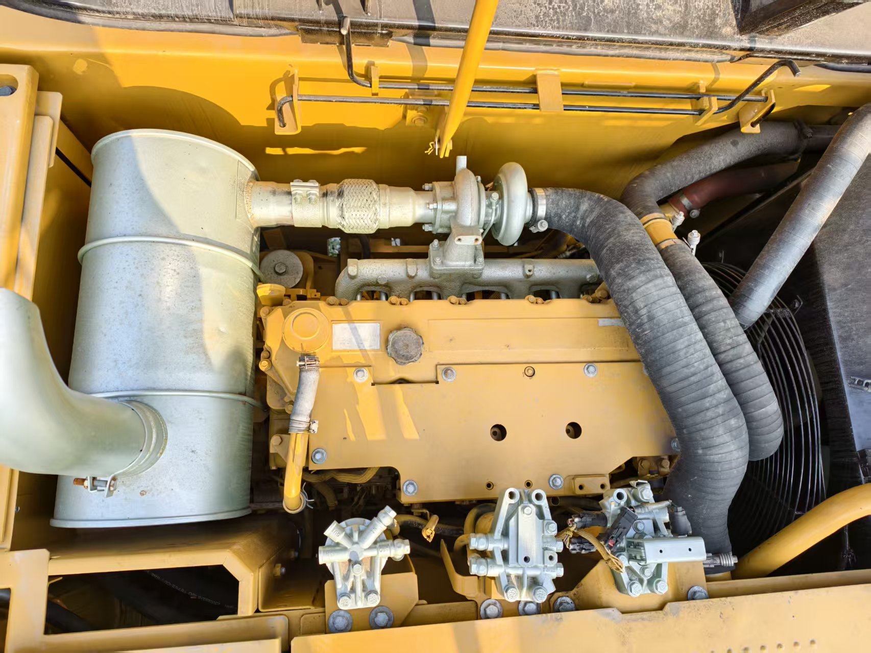 - Engine: Cat C6.4 ACERT 6-cylinder water-cooled diesel engine; rated power 110kW (148HP) @ 2,000rpm (ISO 9249); max torque 660N·m @ 1,400rpm; Tier 3 emission compliance (adaptable to regional standards)