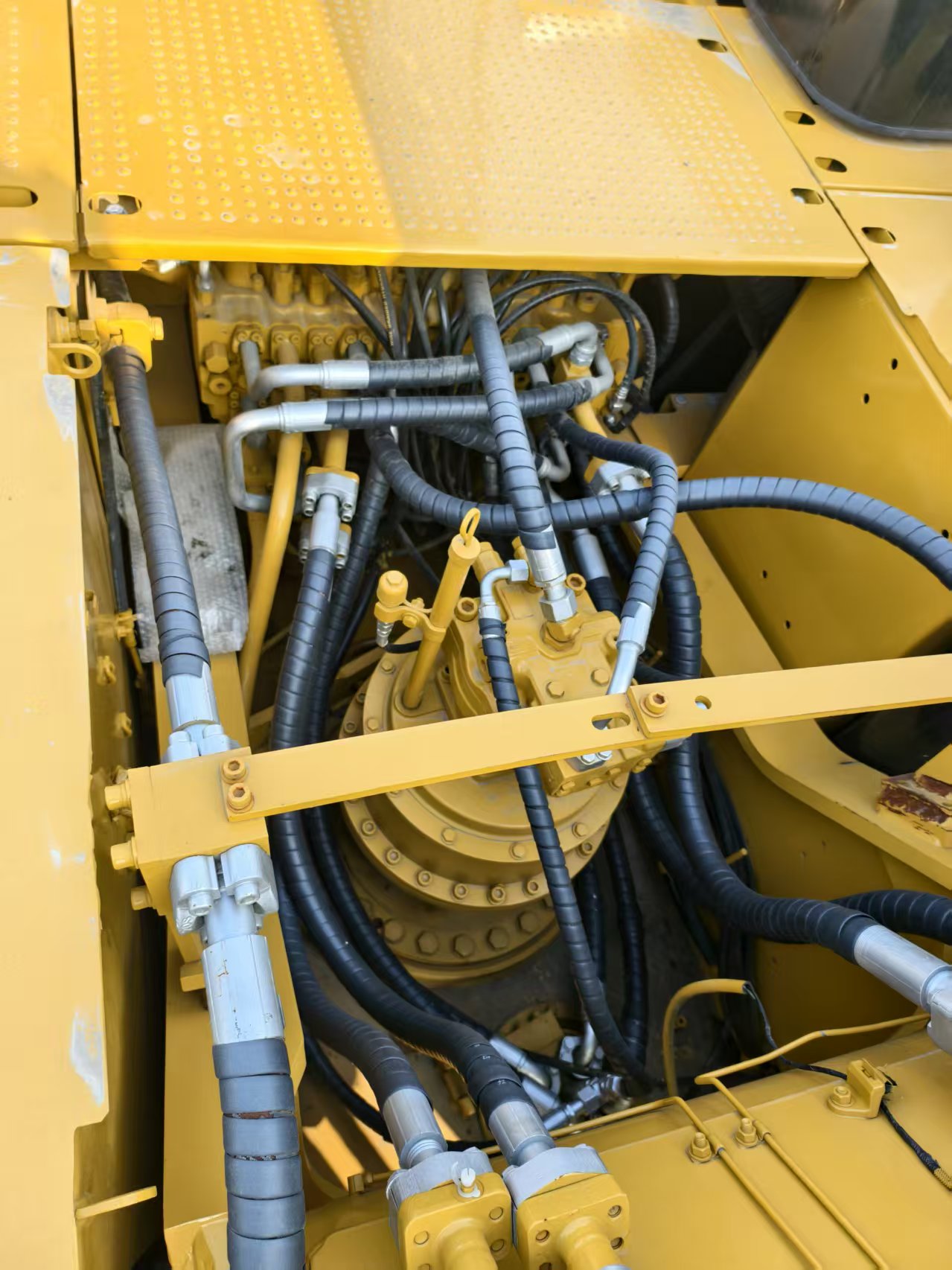 - Travel System: Dual-speed travel motors; low speed 2.5 km/h (high torque for 70% slope climbing); high speed 4.6 km/h (fast relocation); maximum traction 300 kN.